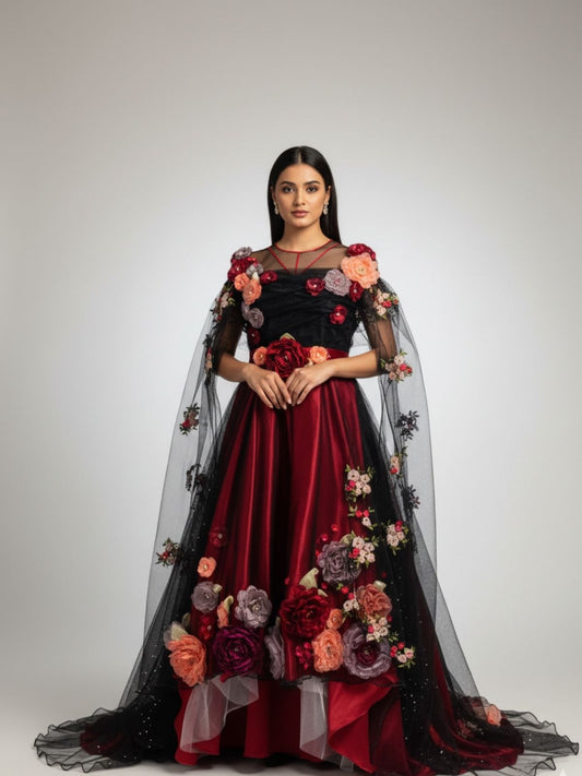 Immerse yourself in the captivating beauty of "The Flower Gown" from our Gowns collection. This...