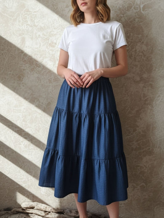 This ankle-length denim skirt offers a perfect blend of modesty and versatility. Designed for comfort...