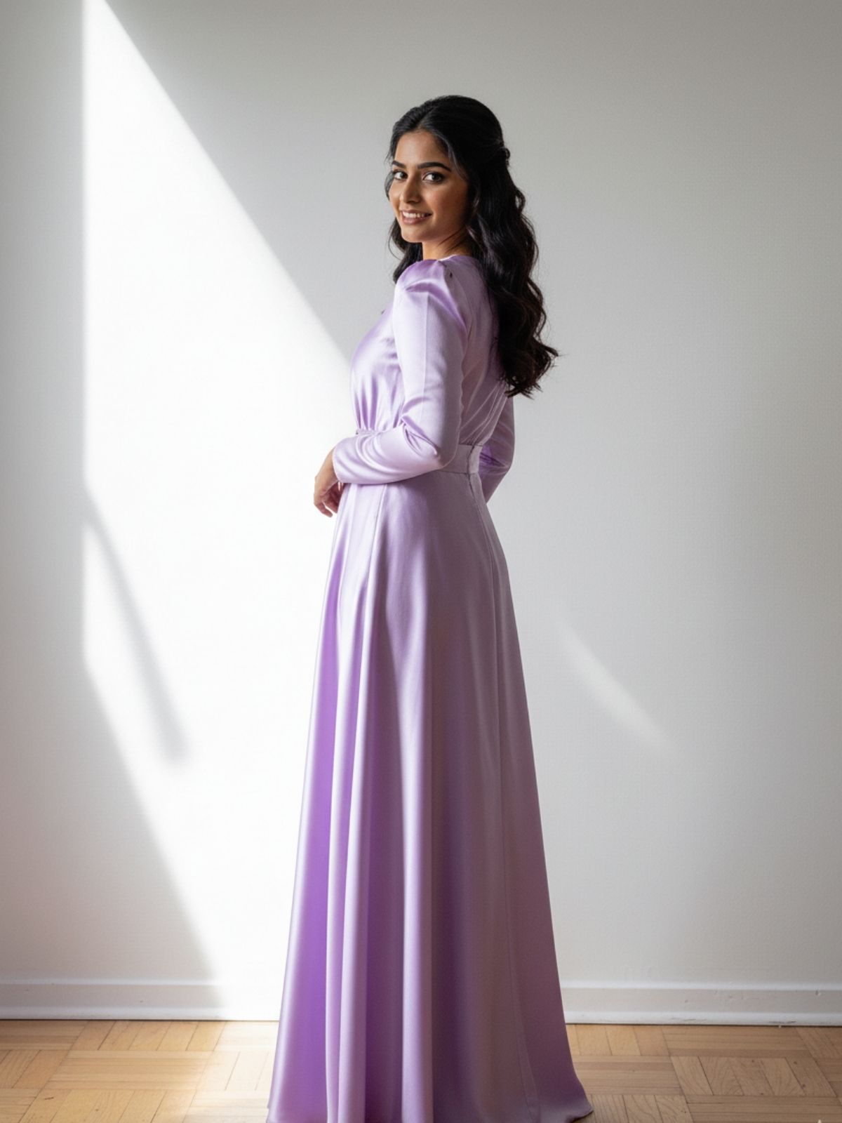 This chic silk dress features elegant puff sleeves, adding a touch of volume and sophistication to its sleek silhouette. The beaded belt cinches at the waist, enhancing the dress's shape while adding a hint of sparkle. Perfect for both casual and formal occasions, this dress effortlessly combines classic style with modern flair.